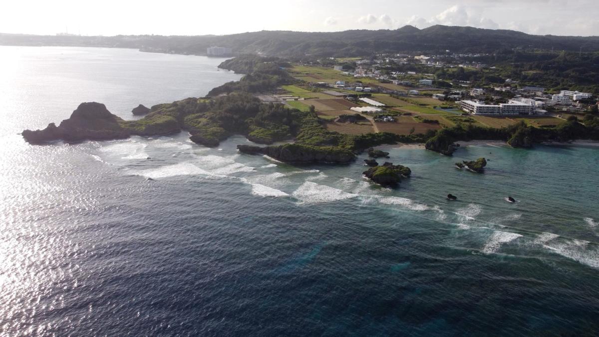 Cape Maeda has some fun surfing waves, and will hold a swell of 3 to 6 feet. Swells above the 6 foot range will not break properly on the abrupt reef and generally close out, making the area un-surf-able and dangerous during larger swells as waves break”top to bottom” on a sharp, shallow reef with no hoping of exit for the surfer. During winter, north swells of 3-4 feet at short intervals make surfing possible but conditions are rarely good as the north winds create semi permanent onshore/side shore winds until well into April. One hazard to watch out for during winter surf at Cape Maeda is the short period waves which usually have an interval of less than 8 seconds. Surfers have reported being wiped out on the reef’s edge and not being able to “get their feet under them” as they continue being pounded by the short-interval surf. This can be a dangerous situation being stuck in the impact zone along the drop off. During the summer season, surf days are few and far between as we wait for typhoons to make their way along the East China Sea and send south swells to Cape Maeda. But when they finally arrive it’s a beautiful thing. Summer south swells up to 6-8 feet make great surfing conditions and when accompanied by southerly or light easterly winds Cape Maeda becomes a great surf zone. Summer swells tend to create longer interval swells, which is in itself a different kind of hazard; long interval swells have more energy, are more powerful, and the waves move fast. Also, sets are more pronounced during long interval swells and it is more likely to be in the water when a rogue wave (a waves at least 3 times the size of the average hourly wave) arrives and gives you a wake up call. Also, south swells come along with south currents, which can pull surfers to the north and around the cape into deep, dangerous water.