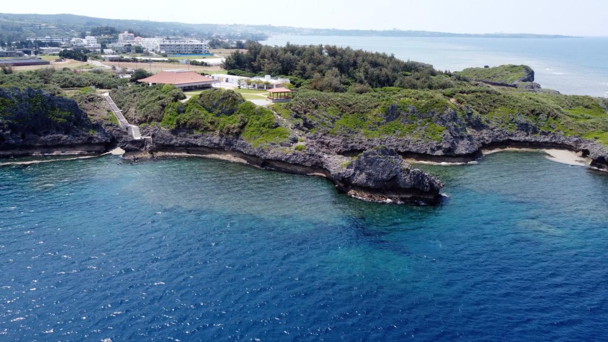 There are a few relatively small but quiet sandy beaches on the west side of Cape Maeda. Walking west out of paid parking you can find several access paths along the north-south running road. The Maeda Flats is an easy to access beach location to get your feet wet swimming or snorkeling. It is shallow enough for small children to play, with a gradual drop off about 20-30 feet from shore. The drop off leads to a deeper area of about 10 feet depth where local dive shops often run discovery SCUBA programs. This is also a nice area to snorkel as it is well inside the barrier reef, but has some interesting features and plenty of sea life to see. There is no natural shade in the area so be sure to bring your pop-up tent or beach shade and be sure to hydrate when spending time in the hot Okinawa sun. Beach 51 is the next sandy area to the south and has some natural caves which provide great natural shade during a long day at the beach. With a less gradual drop off than you’ll find at the Maeda Flats, during high tide you’ll be in neck deep water just 10 feet from shore. The lagoon all along the west side of Cape Maeda has beautiful water and interesting snorkeling, but even well inside the lagoon you will encounter considerable currents at each of the beach locations.